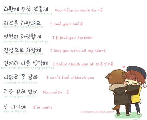 03/01/2022 · Below, we’ve listed what you need to express your love, including phrases to flirt, giving compliments, and romantic Korean phrases. What better reason to learn Korean than to show your love to your significant other? Here is the list of romantic Korean phrases you’ll need! I miss you – 보고 싶어 (bogo sipeo)05/02/2020 · Unlike in Korean dramas, dating a Korean oppa takes more than just “ sa-rang-hae-yo ” and “ po-go ship-paw ”. Bring your courtship game up a notch with these 15 Korean romantic phrases – and a cheeky bonus – curated to impress even the most unmovable of oppas. As with all good stuff, use these phrases in moderation – or until we come up with part two of this …24/09/2012 · Korean Love Expressions. Korean flash cards with Hangul, pronunciation and meaning – all about love! Learn how to say I love you in Korean, I miss you in Korean, boyfriend in Korean, and much more! Since it was such a success on our Tumblr blog we decided to post it here, on our main blog, as well.28/05/2020 · Nevertheless (Korean Drama, 2021) (Video) Korean Words/Phrases/Expressions from Korean Dramas #3 “It’s Okay To Not Be Okay” (2020) Episode 2 Recap “It’s Okay To Not Be Okay” (2020) Episode 1 Recap “Mystic Pop-up Bar” Episode 5 Recap; Recent Comments15/10/2020 · I want this forever.”. — A Very Large Expanse of Sea by Tahereh Mafi. “I’m not going far. I’ll always be here. Just an inch away. I promise.”. — Five Feet Apart by Rachael Lippincott. Love should feel like the first time you gallop …